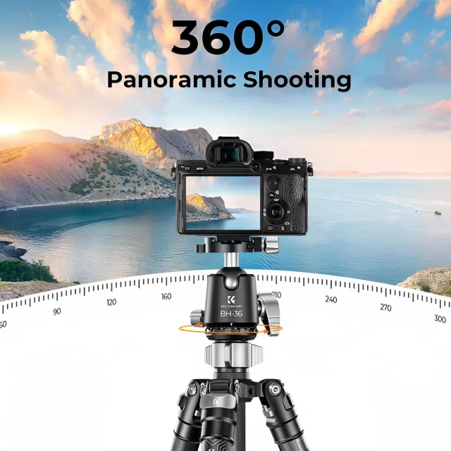 Crafted from high-quality carbon fiber, this tripod delivers superior strength while keeping the total weight to just 3.88 lbs. Its sleek new X-series design features a refined black and gray finish, adding a touch of elegance to your photography gear. The CNC 36mm metal ball head allows for smooth 360° rotation, precise panning, and secure camera positioning even under heavy loads.